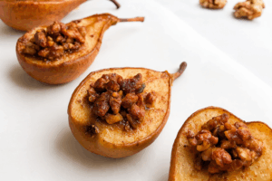 Ugnsbakad päron med kanel, ingefära och nötcrumble
